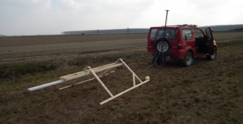 Fig. 7 — Sensore EMI montato su slitta per eseguire un rilievo geofisico su vaste superfici